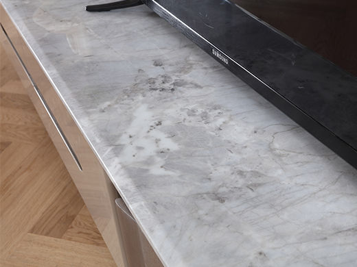 梵歌 现代简约 E1环保中纤板 三节滑珠导轨 6MM岩板石面 维多利亚灰 碳素钢五金架 浅灰白 电视柜¥2575