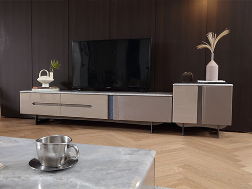 梵歌 现代简约 E1环保中纤板 三节滑珠导轨 6MM岩板石面 爵士白 碳素钢五金架 钢化玻璃 坤士灰 电视柜¥2223