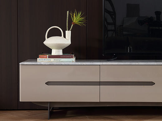 梵歌 现代简约 E1环保中纤板 三节滑珠导轨 细纹橡木皮 高密度三胺板抽屉+三节缓冲导轨 人造大理石 碳素钢五金脚 浅卡其 电视柜