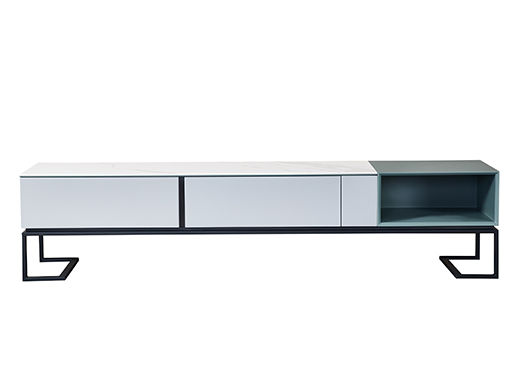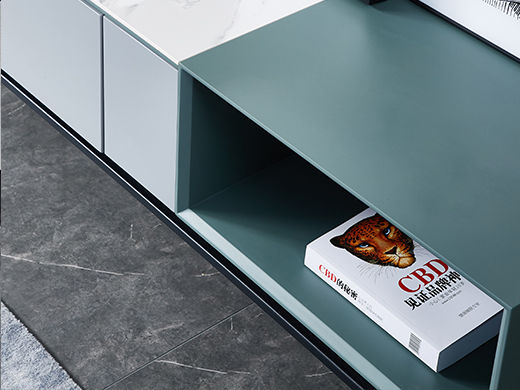 梵歌 现代简约 E1环保中纤板 三节滑珠导轨 6MM岩板石面 潘多拉 碳素钢五金架 钢化玻璃 炭灰+碳灰实色 电视柜¥1897