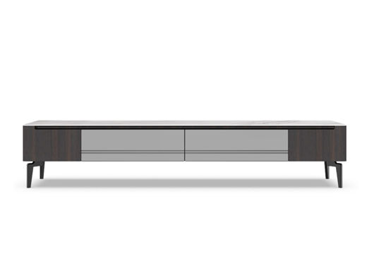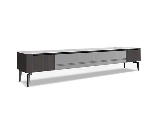 梵歌 现代简约 E1环保中纤板 三节滑珠导轨 6MM岩板石面 潘多拉 碳素钢五金架 钢化玻璃 炭灰+碳灰实色 电视柜¥1897