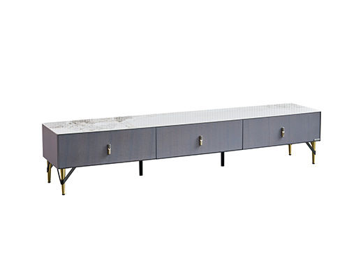 梵歌 现代简约 E1环保中纤板 三节滑珠导轨 6MM岩板石面 维多利亚灰 碳素钢五金架 浅灰白 电视柜¥2575