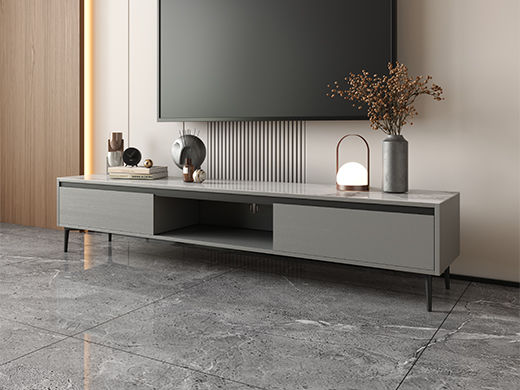 【套餐专享价】每屋优享系列 现代简约 岩板+密度板+碳素 钢五金脚 2米电视柜(未开电源孔)