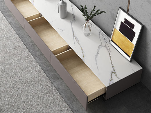 B系优选 现代简约 中纤板(MDF)亮光烤漆+岩板台面+实木松木抽屉 香奈儿 拉伸电视柜(未开电源孔)
