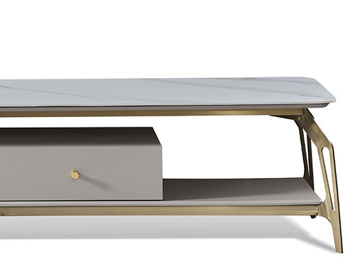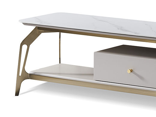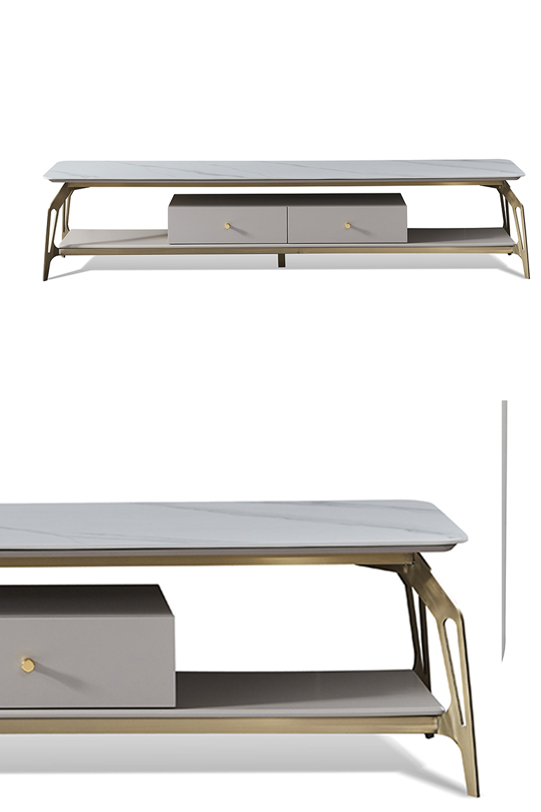 拜洛迪 轻奢 板木结合配拉丝钛金不锈钢 大理石面 白色 电视柜¥6071