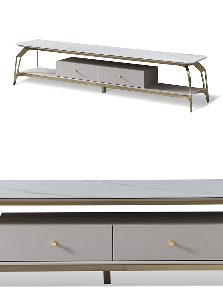 拉斐尔 轻奢 多层实木板+烤漆+电镀不锈钢五金+岩板+静音导轨 电视柜¥6301