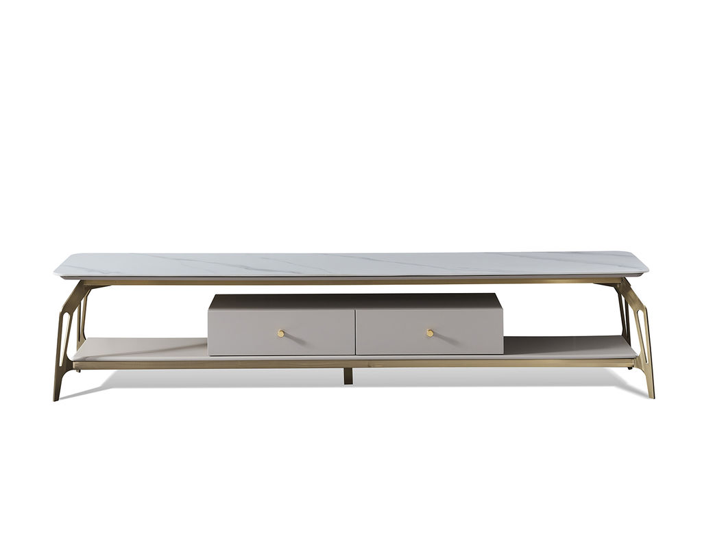 拜洛迪 轻奢 板木结合配拉丝钛金不锈钢+大理石 白色 2米电视柜¥5743