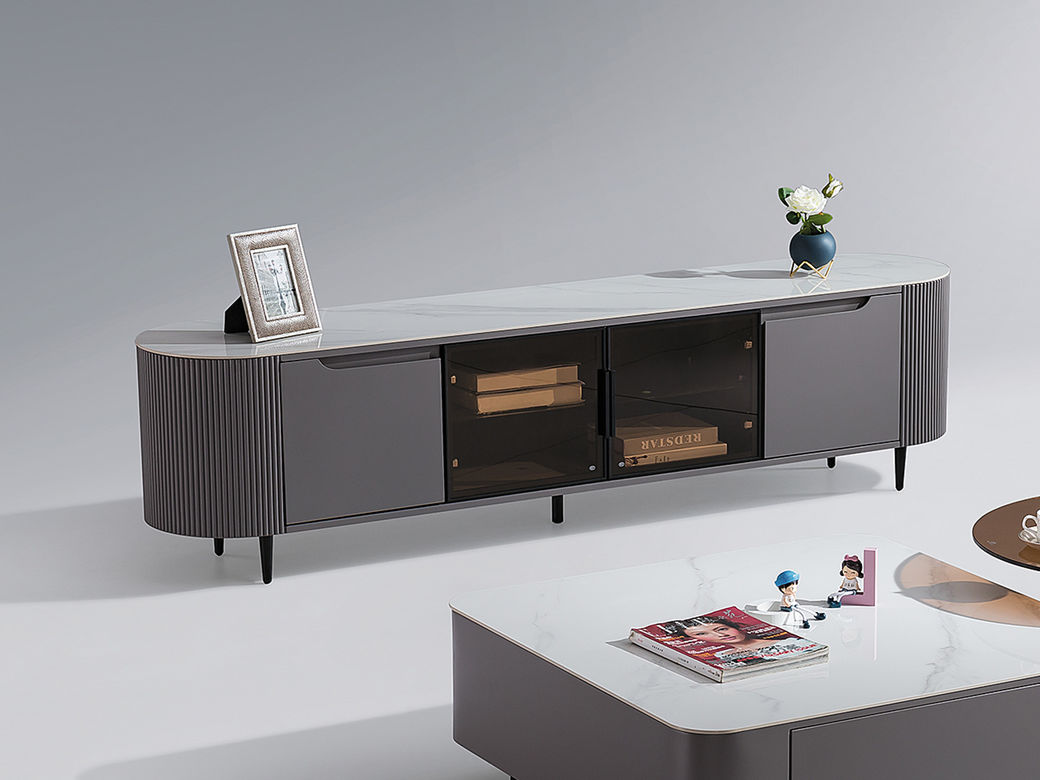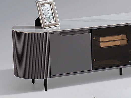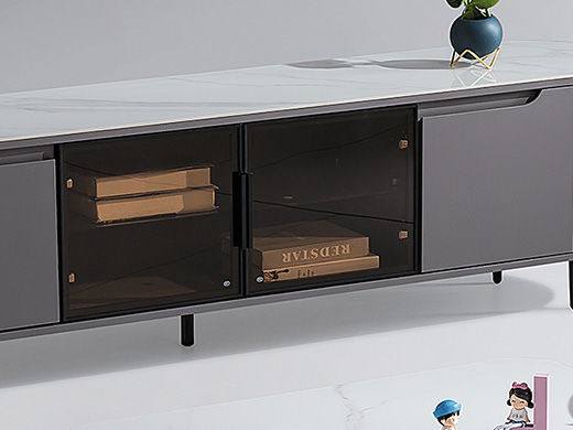 甄品家具 现代简约 烤漆柜体+亮光雪山石岩板+茶色玻璃+五金脚架 2米电视柜(未开电源孔)