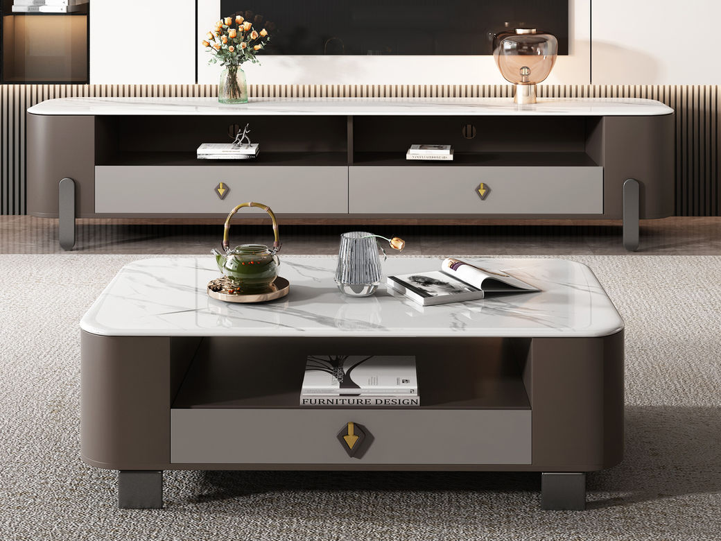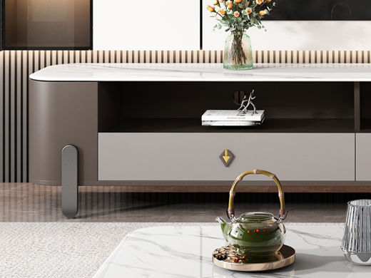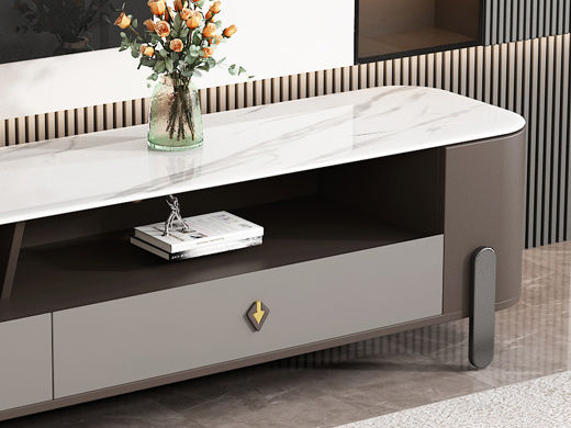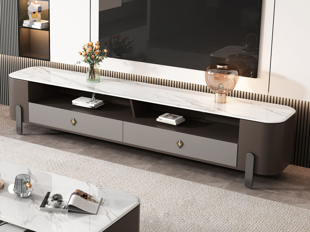 逸澜斯 极简 慕丝白(白龙玉)微晶石+太空灰 环保高密度板+实木+钛金脚 2米电视柜