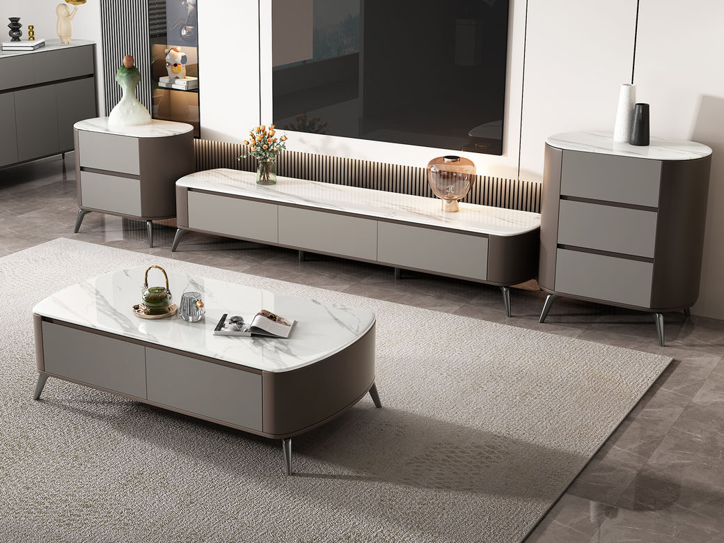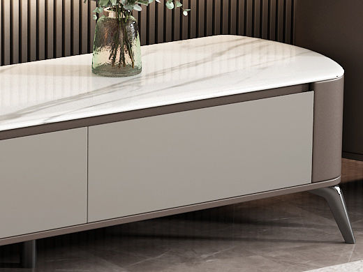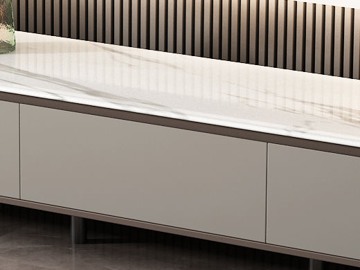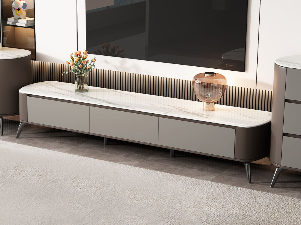 逸澜斯 极简 慕丝白(白龙玉)微晶石+太空灰 环保高密度板+实木+钛金脚 2米电视柜