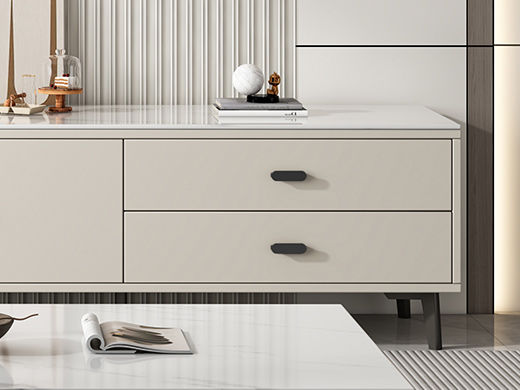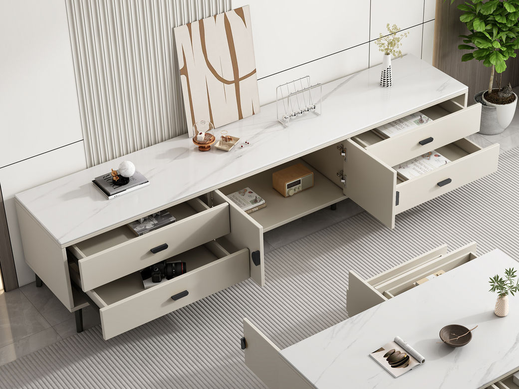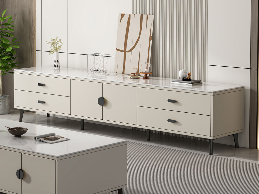 【套餐专享价】每屋优享系列 奶油 雪山白亮光岩板+高密度环保板+五金脚 2米电视柜(未开电源孔) |
