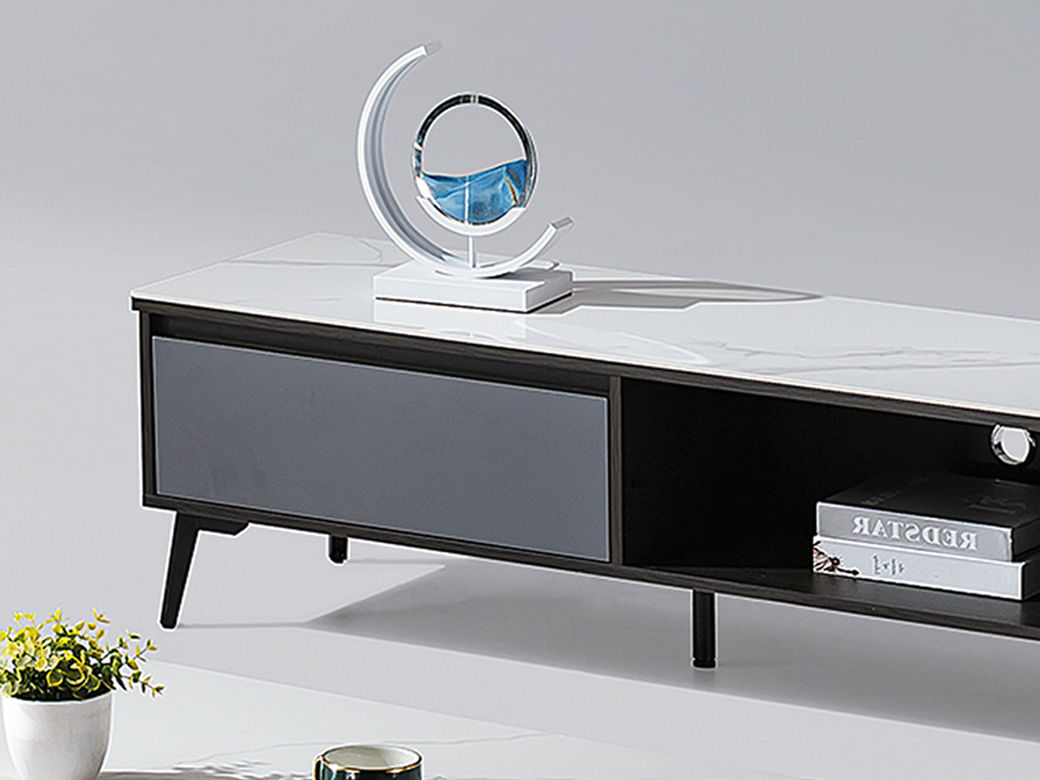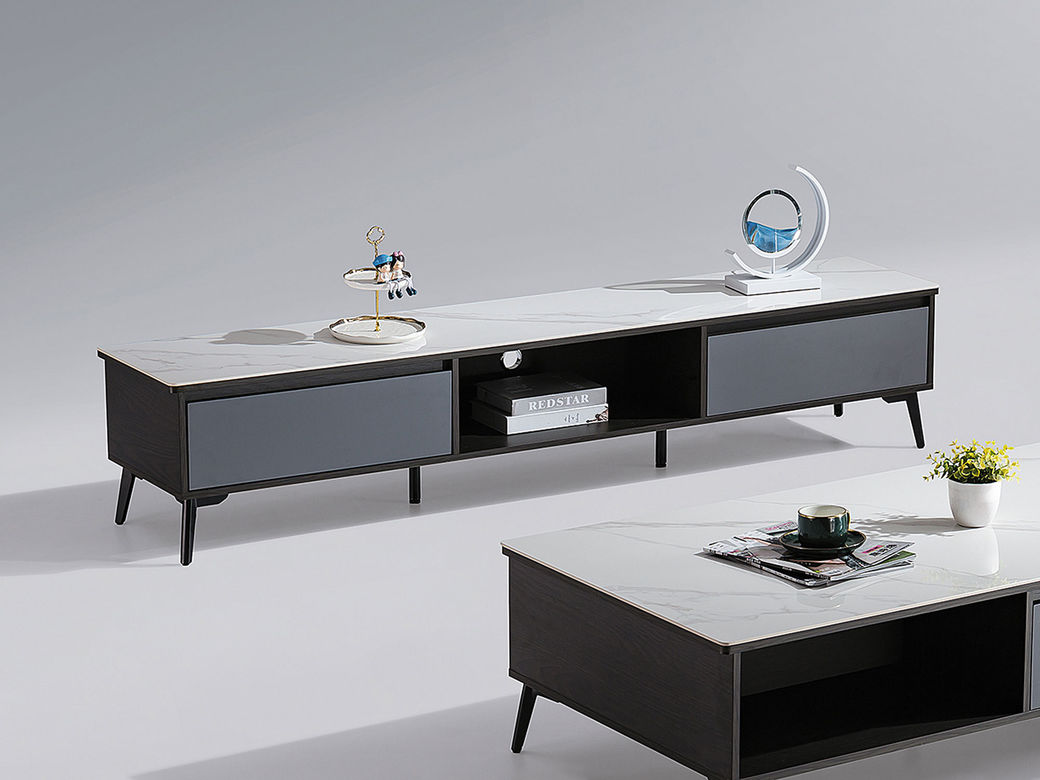 甄品家具 现代简约 烤漆柜体+碳素钢脚架+亮光雪山石岩板 2米电视柜(未开电源孔)¥2032