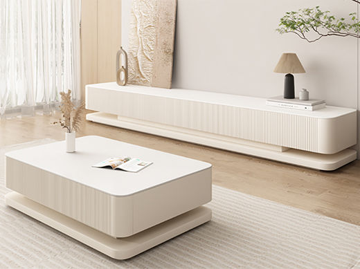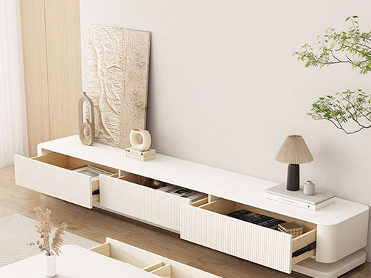 B系优选 奶油风 板材+纯白岩板 2米电视柜(未开电源孔)