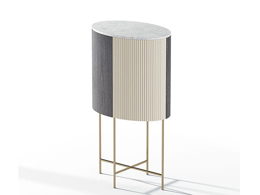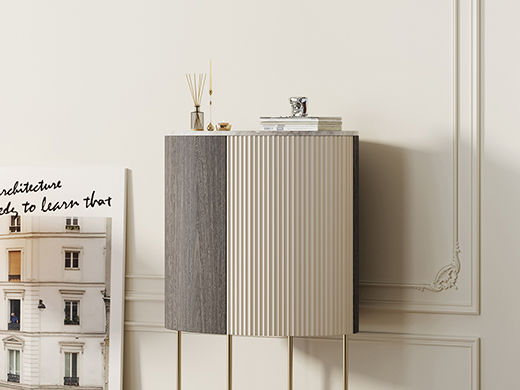 鹿屿 意式轻奢 不锈钢香港金+E1级中纤板贴鸡翅木皮+波浪板弯板 斗柜装饰柜