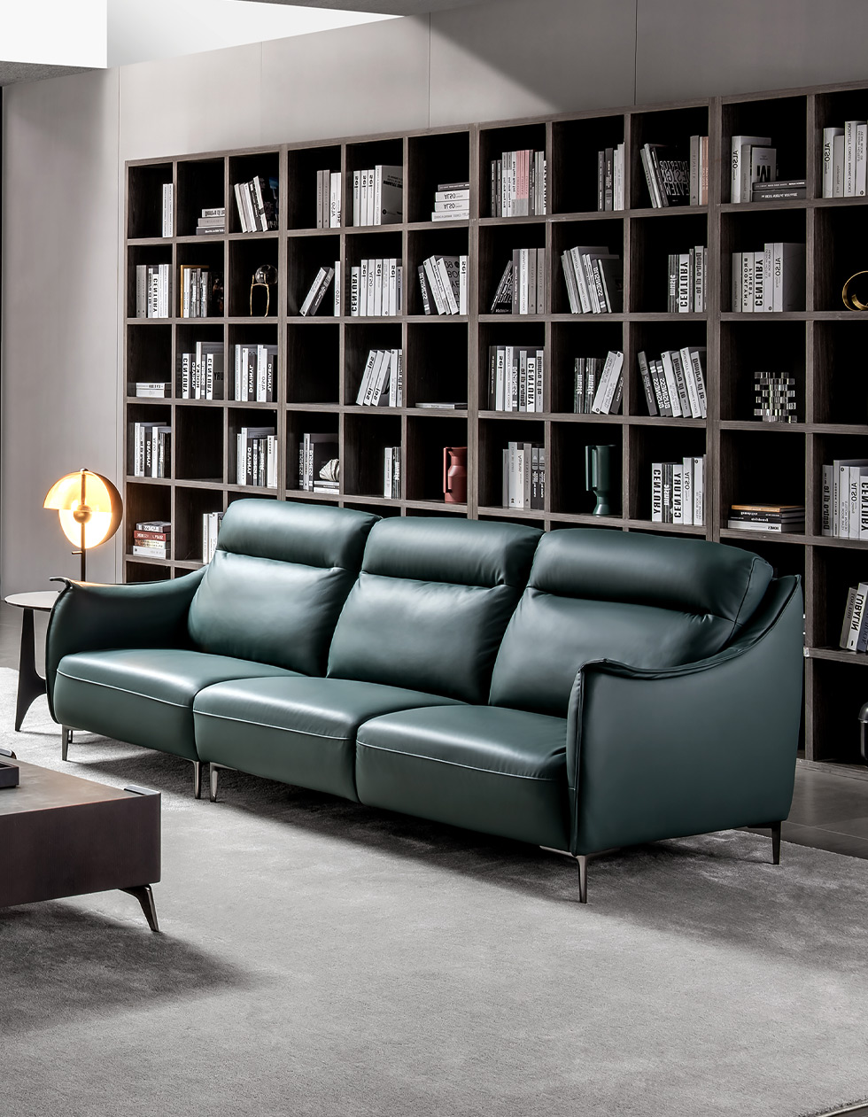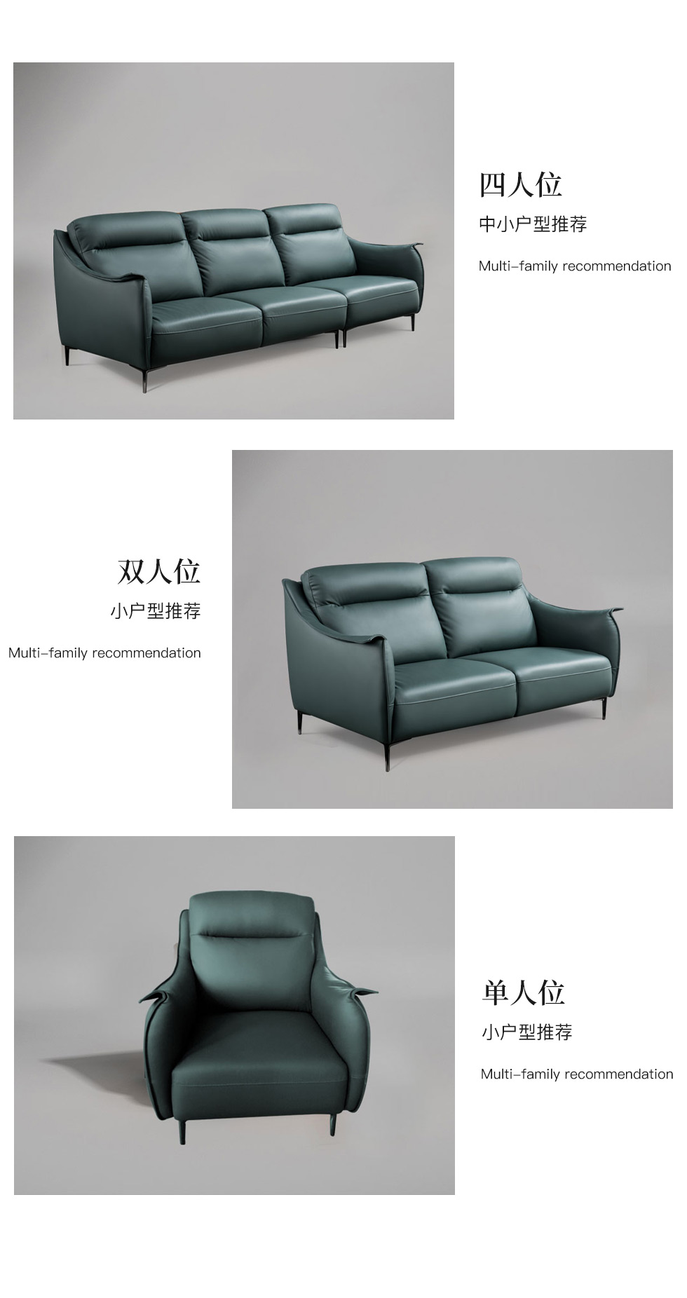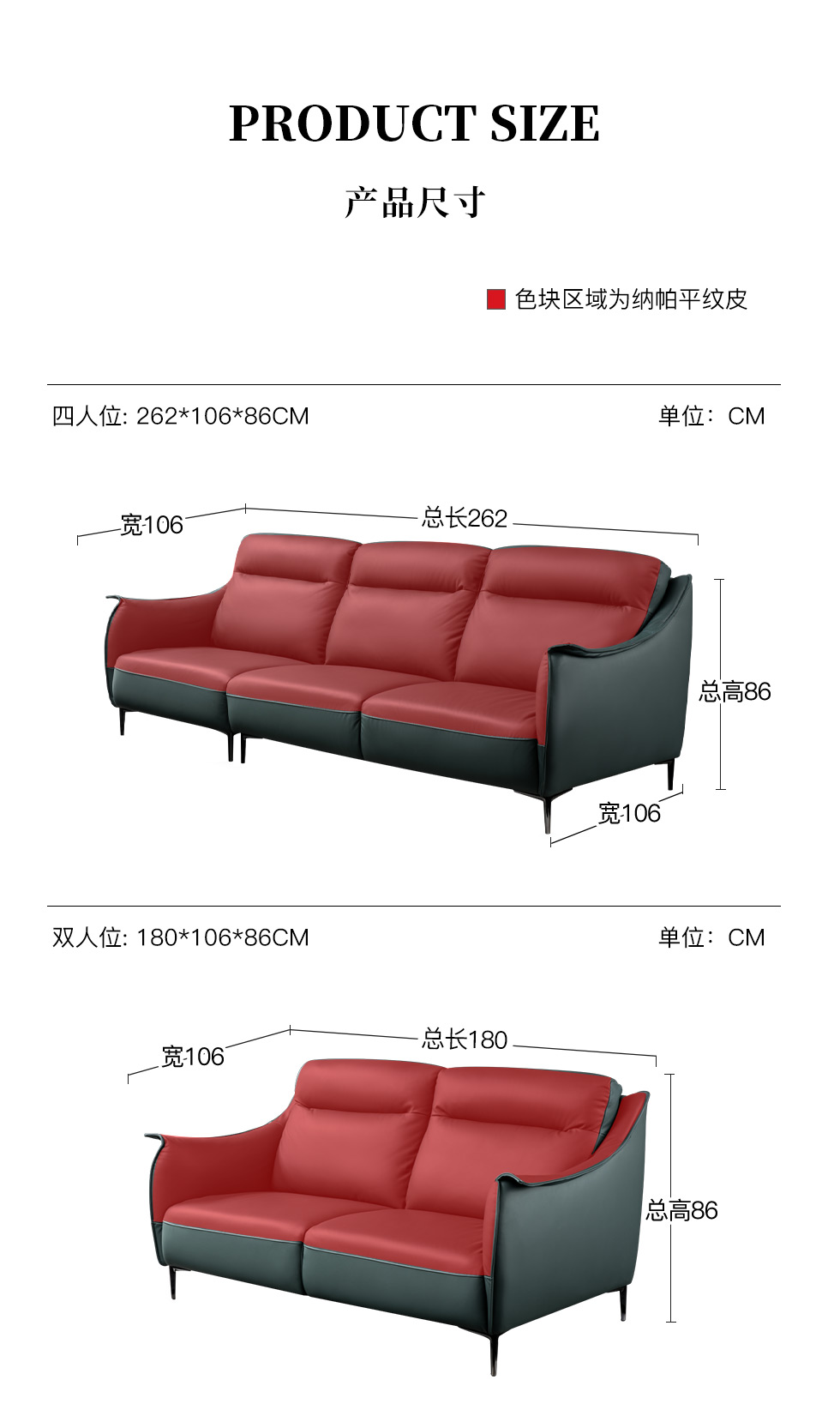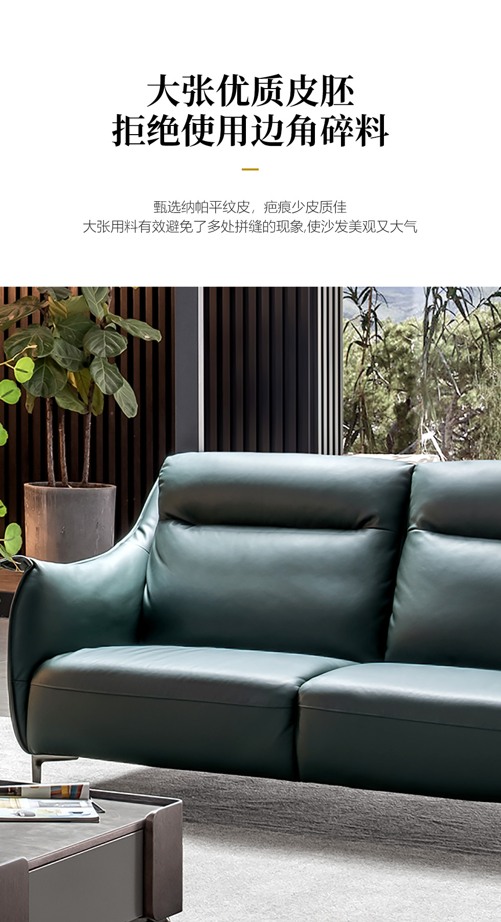 希奥 极简 纳帕平纹皮+40-45密度+五金脚墨绿色 二人位 皮艺1.8米沙发