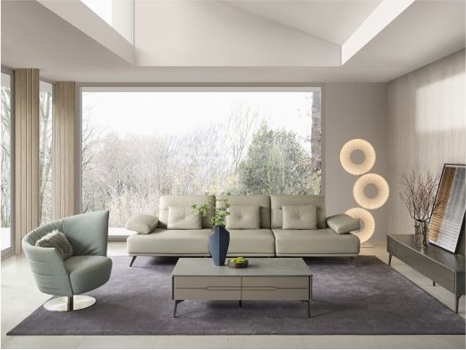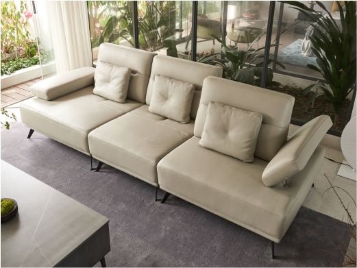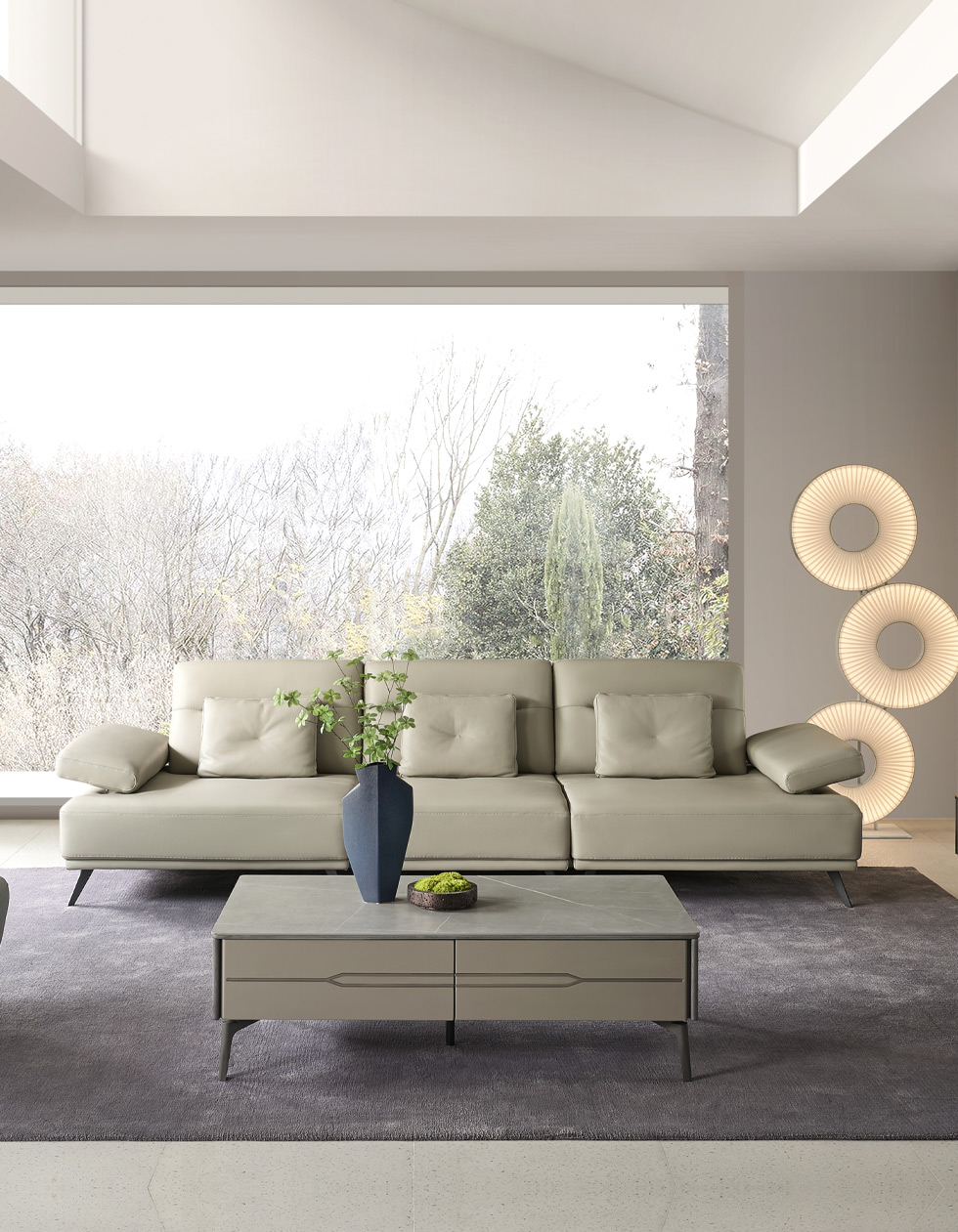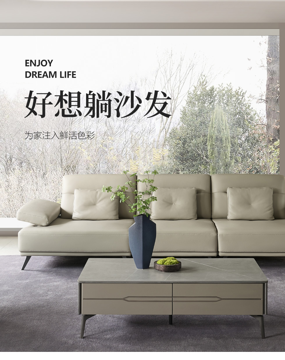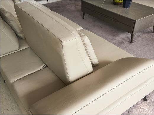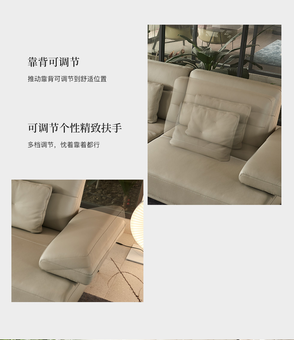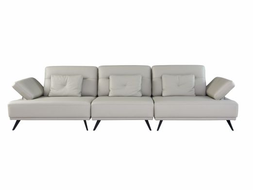 希奥 极简 40-45密度+接触面头层中厚压纹皮+金属脚+靠背可调节浅灰色皮艺3.25米沙发 3人位
