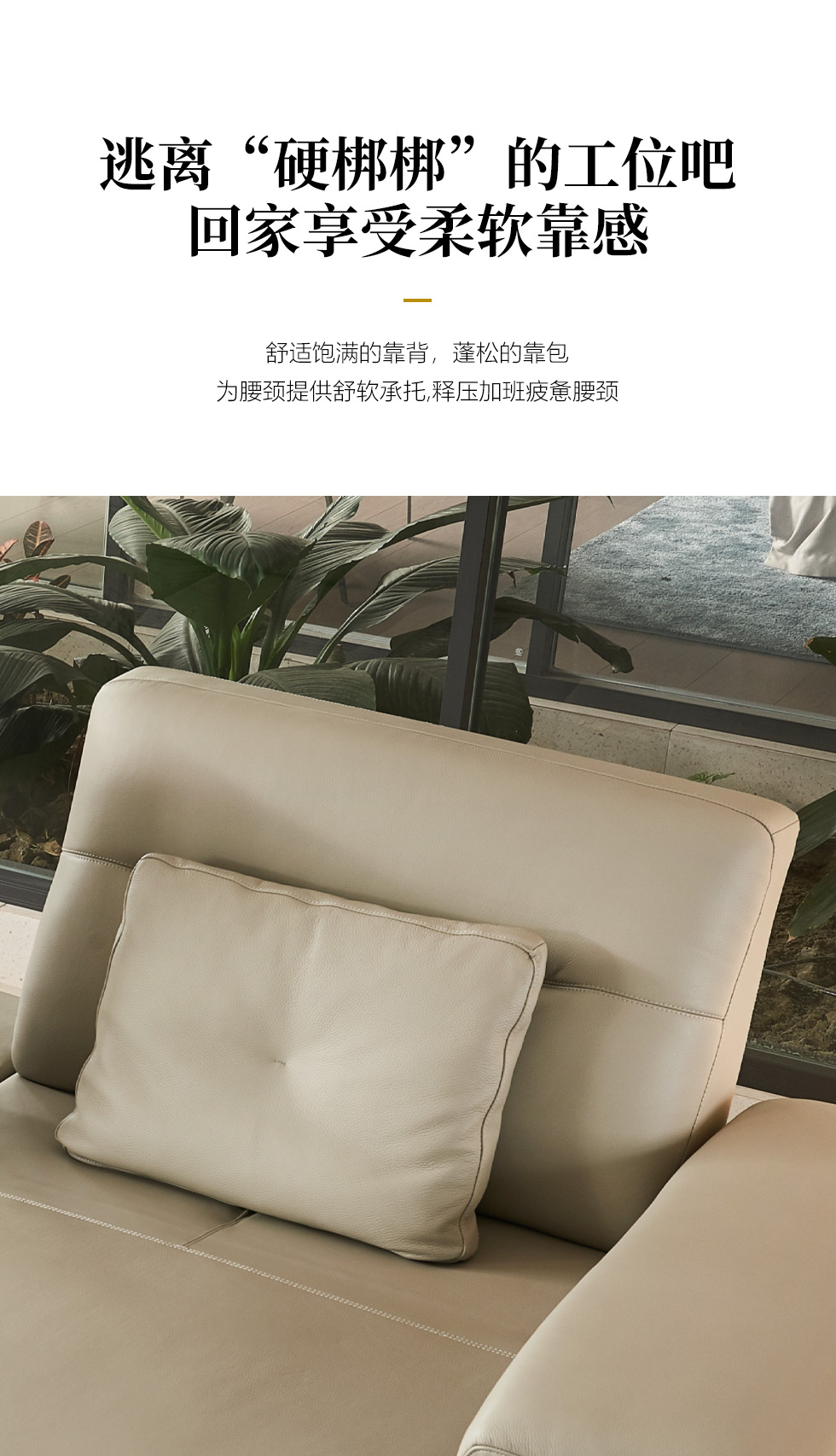 皇朝家居 现代极简 接触面轻压摔头层黄牛皮(皮等级P2)+高回弹+桉木足方+E1双面杨木夹板+优质白鹅绒公仔棉+五金脚 三人位 3.02米沙发¥14888