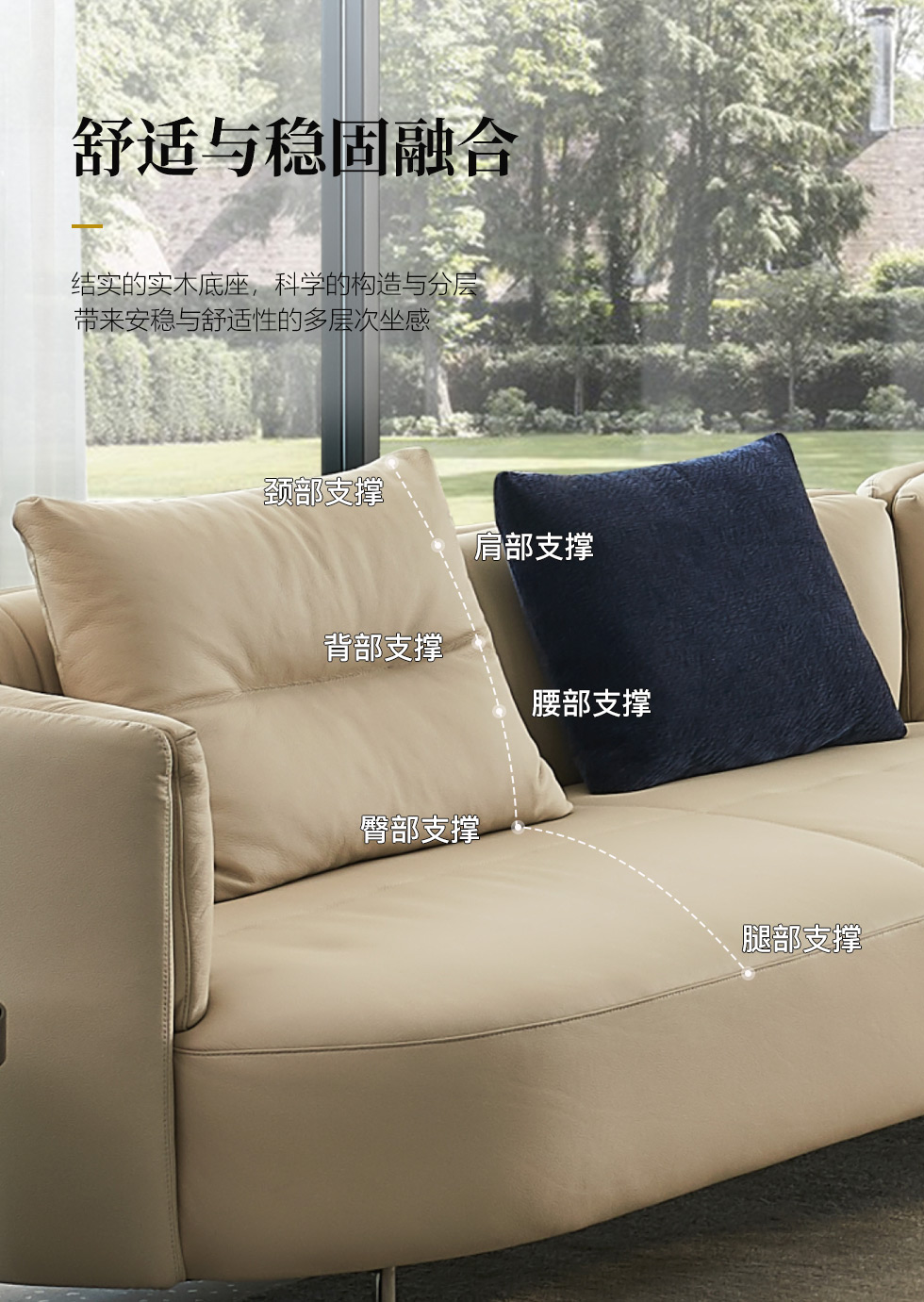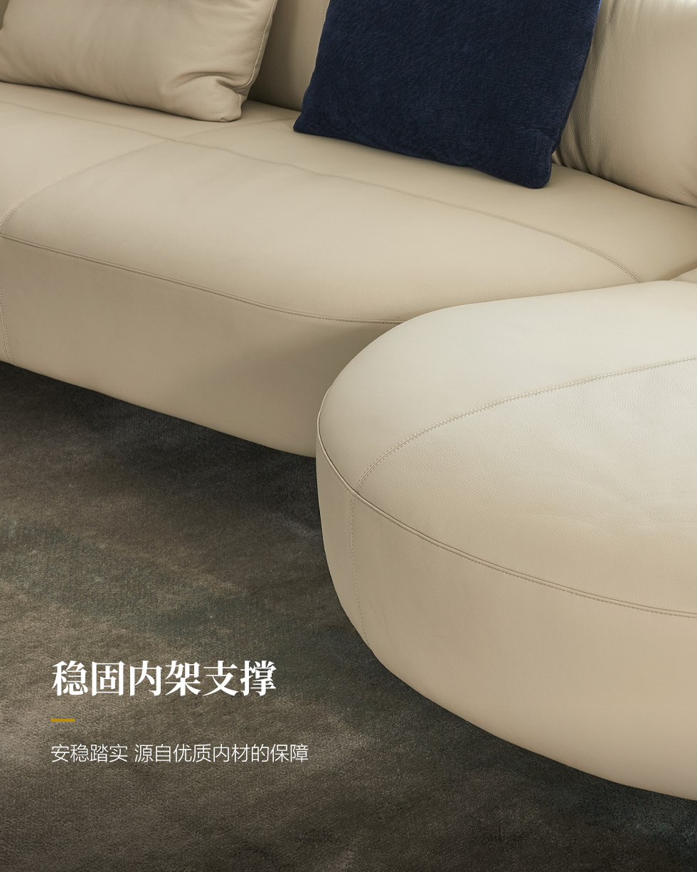 梵纳意简 极简 接触面头层牛皮+仿皮+多层实木板+实木内架+高回弹海绵+实木5分脚米黄色 1+左贵妃+3 3.45米沙发¥36043