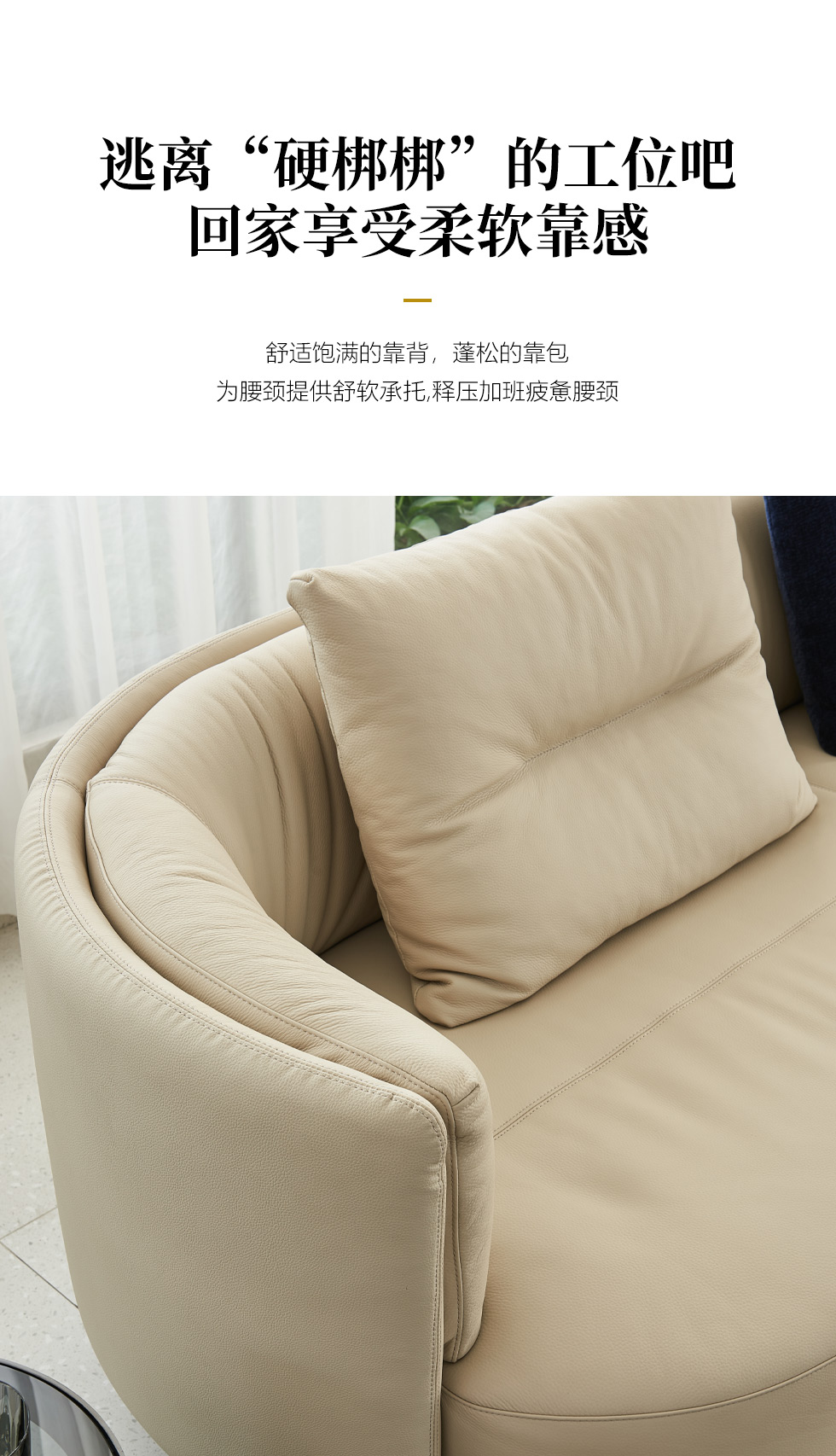 希奥 极简 海绵40-45密度+接触面羽绒真皮+中厚压纹皮+金属脚米黄色皮艺转角3.37米沙发(3人位+右贵妃)