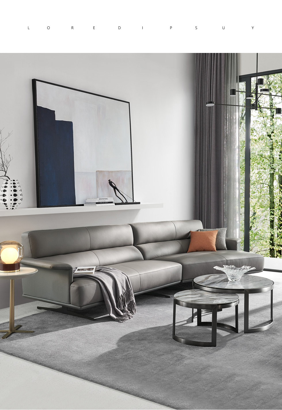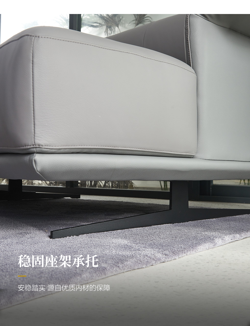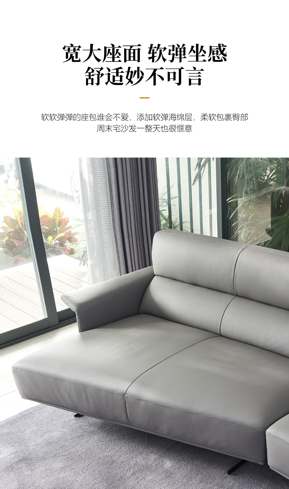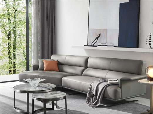 Milos米洛斯 极简 半真皮(A皮)+高回弹海绵+羽绒+实木松木内架+碳素钢金属烤漆框架 皮艺3.05米沙发 (单扶三+单扶单)¥24064