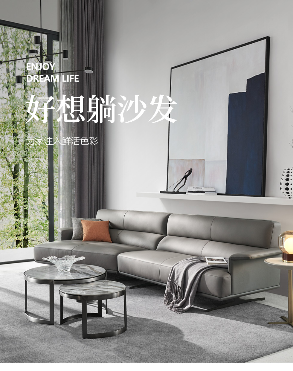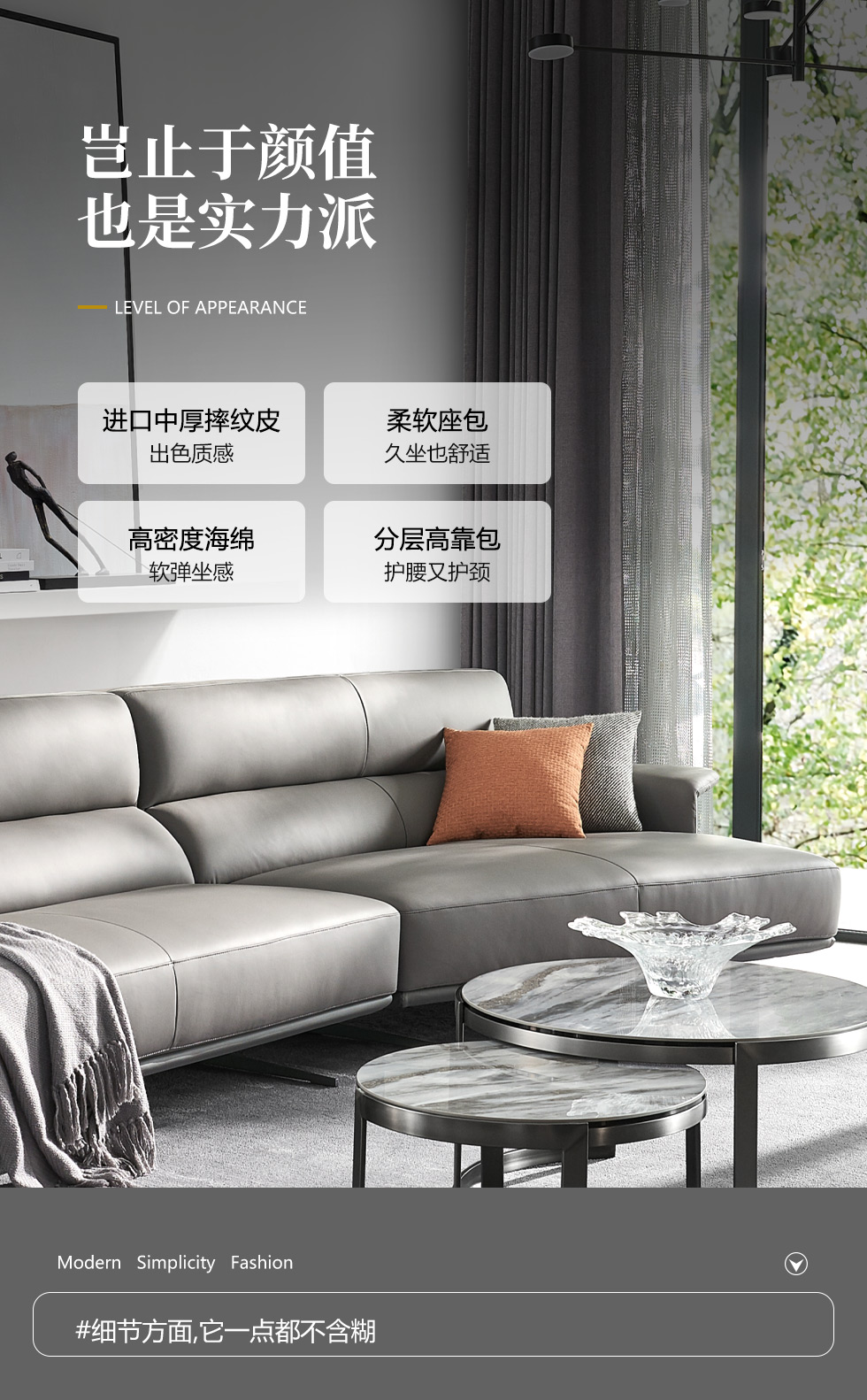 希奥 极简 进口磨砂皮 俄罗斯樟子松 组合沙发 皮沙发¥30299
