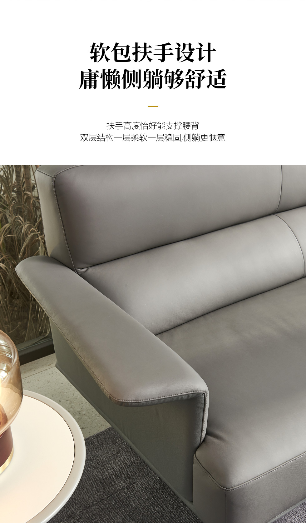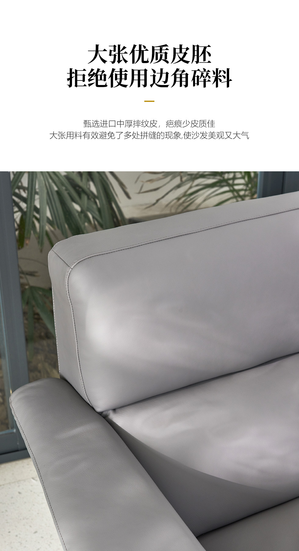 Milos米洛斯 极简 半真皮(A皮)+高回弹海绵+羽绒+实木松木内架+不锈钢拉丝脚 皮艺2.35米沙发 三人位¥21105