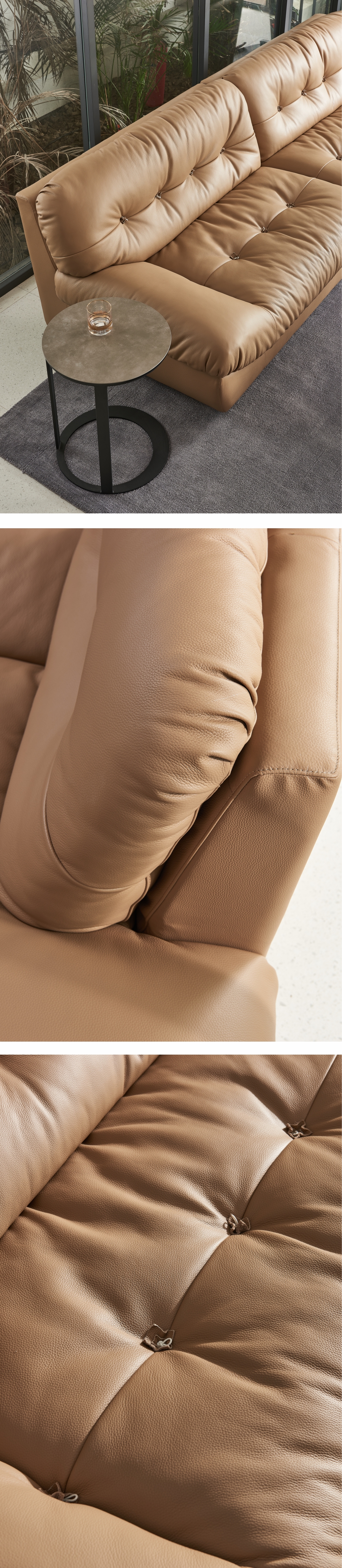 缔造 极简 接触面进口意大利头层真皮+羽绒+高密度海棉+航空铝合金枪黑脚 皮艺转角3.24米沙发(右2+左贵)¥15560