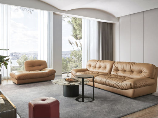 希奥 极简 接触面头层中厚压纹皮+圆胶脚皮艺转角沙发(4人位+右贵妃)网红云朵2.8米沙发 |