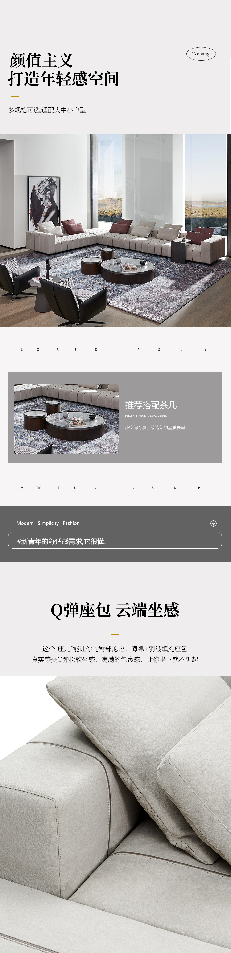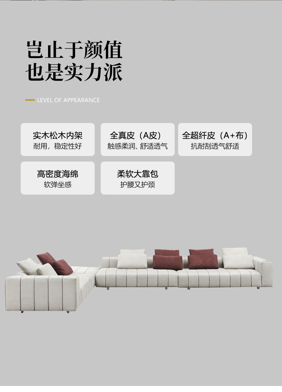希奥 极简 全清纳帕牛皮 俄罗斯樟子松 右3+无扶3+大左贵 全皮转角4.45米沙发