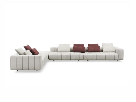 Milos米洛斯 极简 全超纤皮(A+布)+高回弹海绵+羽绒+实木松木内架+不锈钢拉丝底架 皮艺转角 钢琴键网红 4.31米沙发(单扶三*2+活动扶手+无扶单+右贵妃)