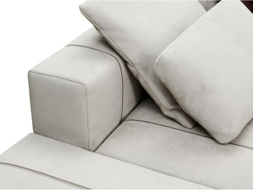 Milos米洛斯 极简 半真皮(A皮)+高回弹海绵+羽绒+实木松木内架+不锈钢拉丝脚 皮艺转角3.7米沙发 (3+左贵)