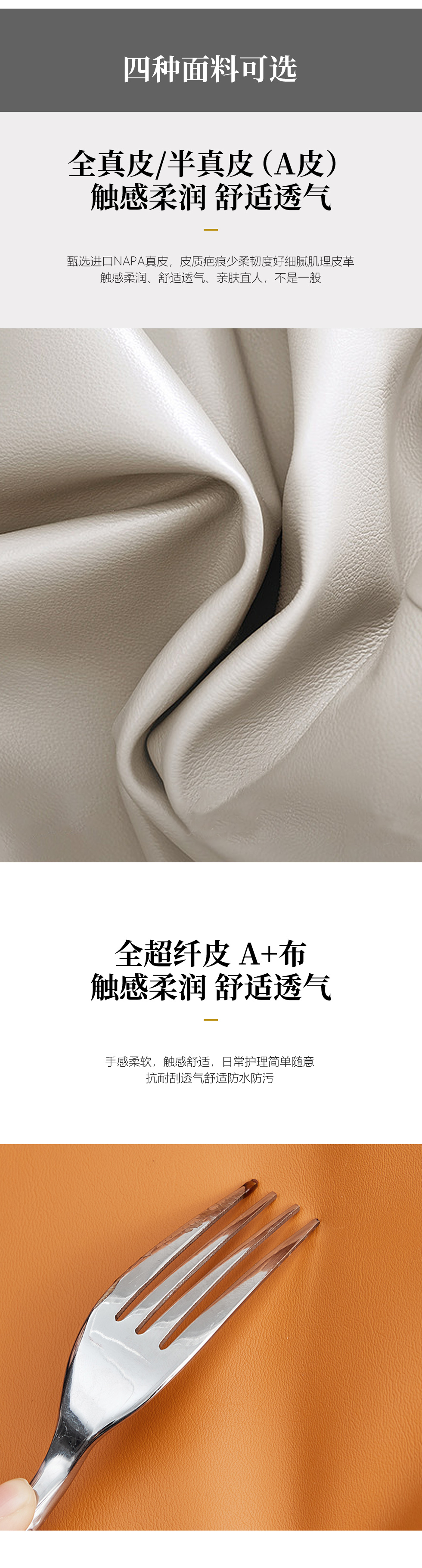 Milos米洛斯 极简 半真皮(A皮)+高回弹海绵+羽绒+实木松木内架+不锈钢拉丝脚 网红钢琴键 皮艺组合4米沙发¥24472