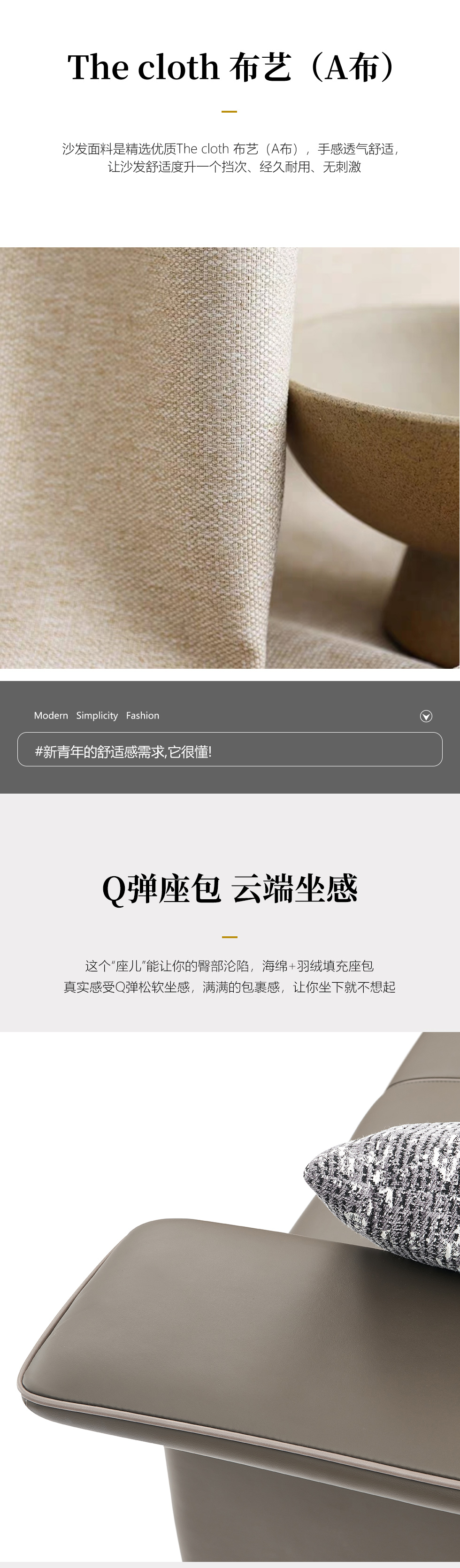 Milos米洛斯 极简 半真皮(A皮)+高回弹海绵+羽绒+实木松木内架+不锈钢拉丝脚 皮艺2.35米沙发 三人位¥21105