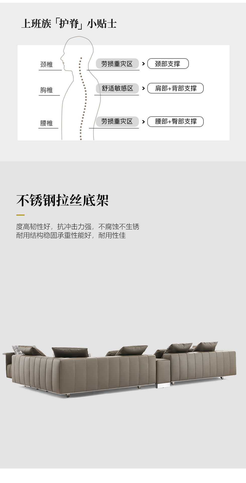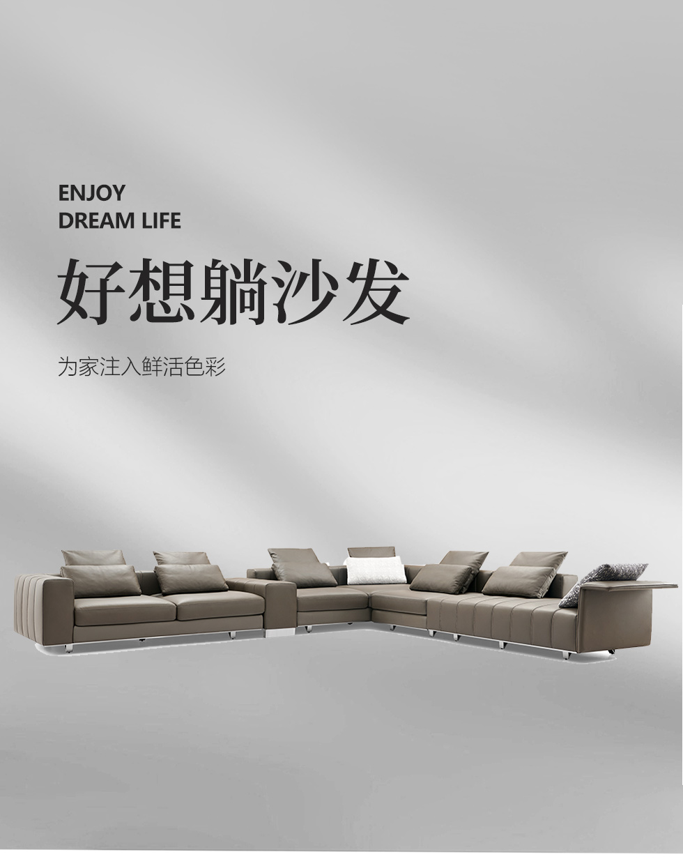 Milos米洛斯 极简 半真皮(A皮)+高回弹海绵+羽绒+实木松木内架+不锈钢拉丝脚 皮艺转角3.7米沙发 (3+左贵)¥86047