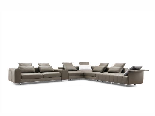 Milos米洛斯 极简 半真皮(A皮)+高回弹海绵+羽绒+实木松木内架+不锈钢拉丝脚 皮艺转角3.7米沙发 (3+左贵)¥86047