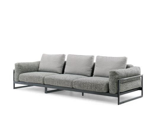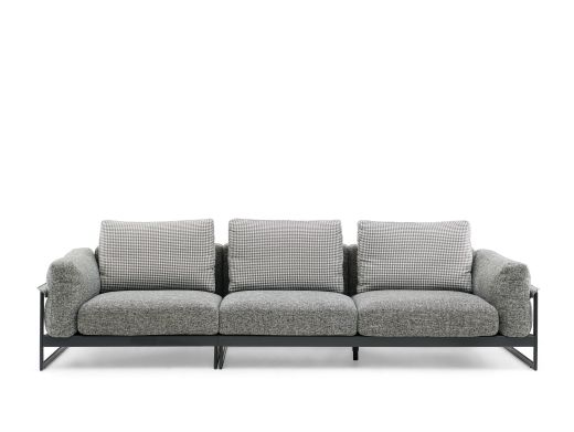 Milos米洛斯 极简 布艺(A布)+高回弹海绵+羽绒+实木松木内架+碳素钢金属烤漆框架 皮艺3.05米沙发 (单扶三+单扶单)