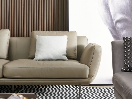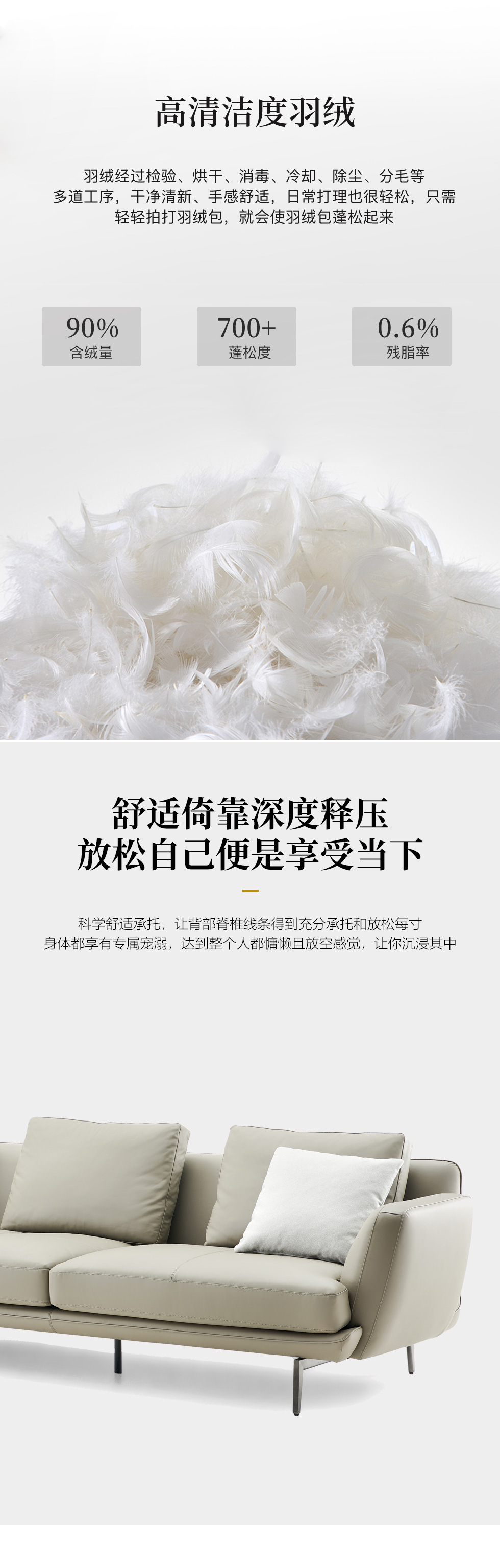 Milos米洛斯 极简 半真皮(A皮)+高回弹海绵+羽绒+实木松木内架+不锈钢拉丝脚 皮艺2.35米沙发 三人位¥21105