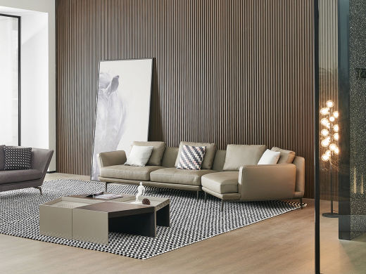Milos米洛斯 极简 半真皮(A皮)+高回弹海绵+羽绒+实木松木内架+不锈钢拉丝脚 网红钢琴键 皮艺组合4米沙发¥24472