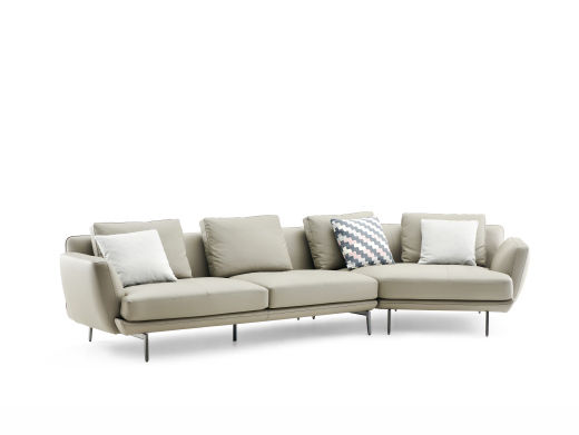 Milos米洛斯 极简 半皮A皮+高回弹海绵+羽绒+实木松木内架+碳素钢金属烤漆脚皮艺转角2.85米沙发 3+左贵妃位