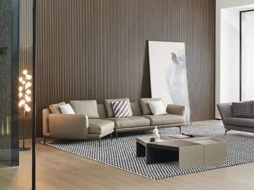 Milos米洛斯 极简 半真皮(A皮)+高回弹海绵+羽绒+实木松木内架+不锈钢拉丝脚 网红钢琴键 皮艺组合4米沙发¥24472