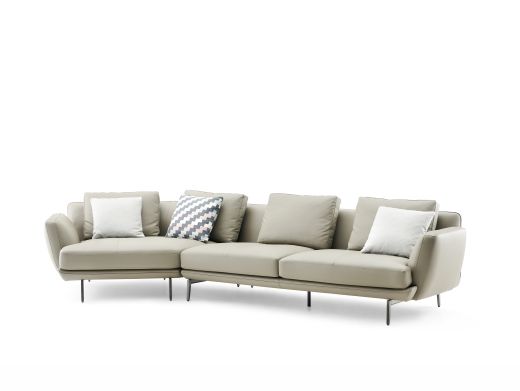 Milos米洛斯 极简 半真皮(A皮)+高回弹海绵+羽绒+实木松木内架+碳素钢金属烤漆框架 皮艺3.05米沙发 (单扶三+单扶单)¥24064