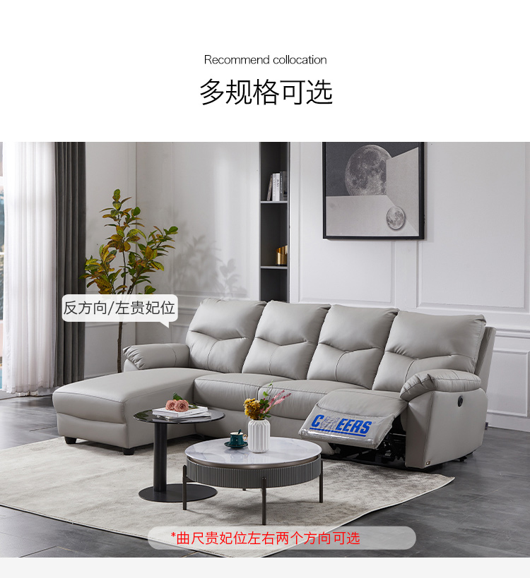 芝华仕 现代简约 接触面进口头层奶牛皮+PVC 合金钢架+进口实木+夹板 塑刚脚 (1+3+左贵妃)【坐右单电机】功能皮艺3.35米沙发1件商品搭配总价: