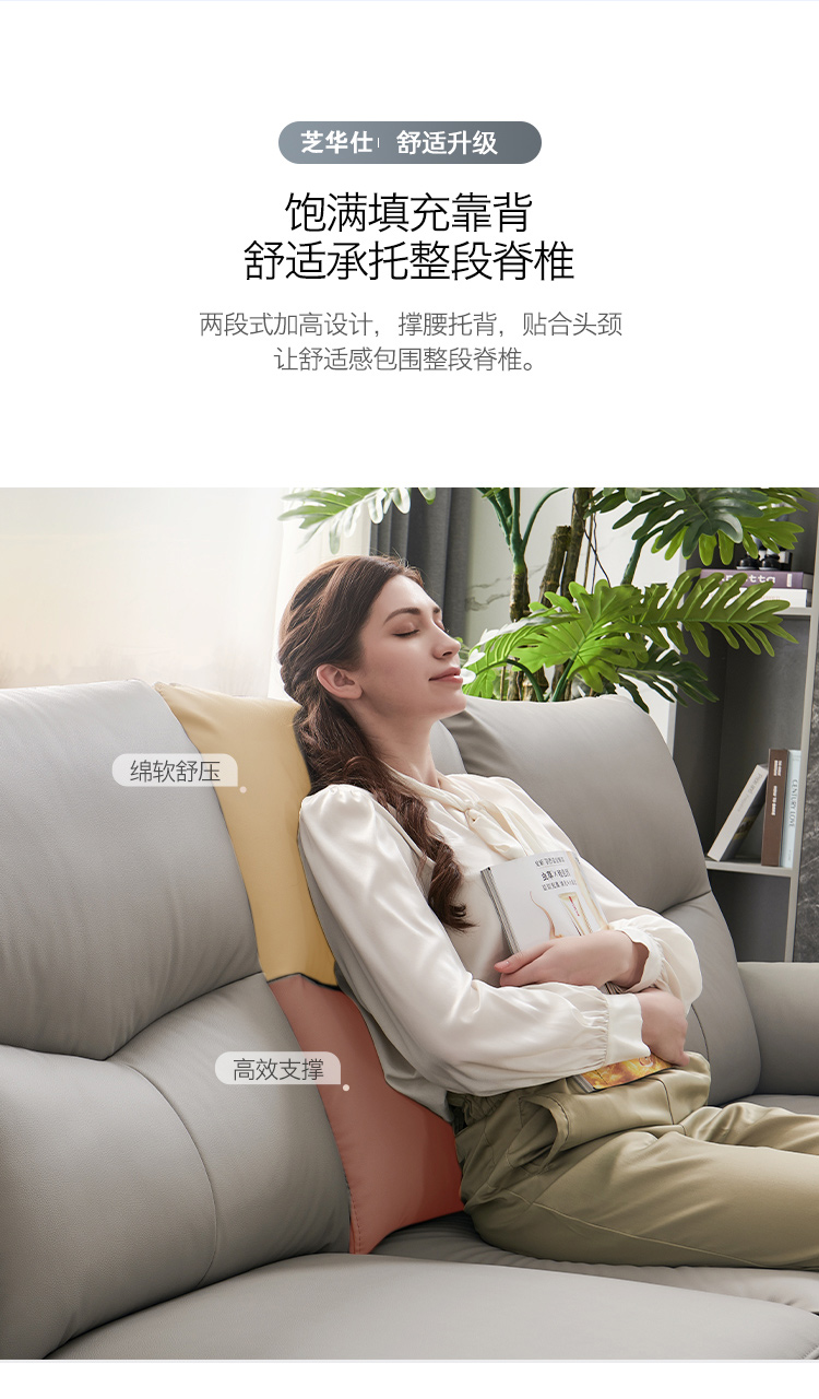 芝华仕 现代简约 接触面进口头层奶牛皮+PVC 合金钢架+进口实木+夹板 塑刚脚 (1+3+左贵妃)【坐右单电机】功能皮艺3.35米沙发芝华仕 现代简约 接触面进口头层奶牛皮+PVC+合金钢架+进口实木+多层实木板+合金刚架脚+塑胶防刮胶套+太空绵+高回弹海绵 三人位【双电机】皮艺功能2.76米沙发