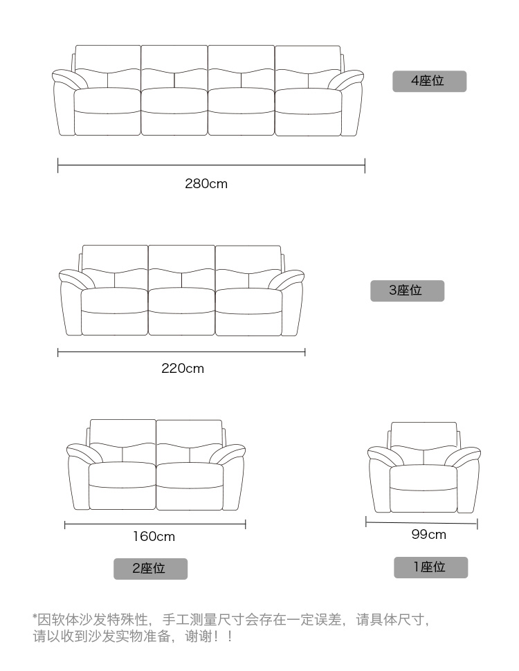 芝华仕 现代简约 接触面进口头层奶牛皮+PVC+合金钢架+进口实木+多层实木板+合金刚架脚+塑胶防刮胶套+太空绵+高回弹海绵 三人位【双电机】功能皮艺2.6米沙发
