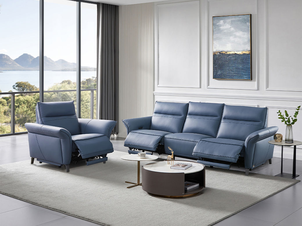 芝华仕 现代简约 接触面进口头层奶牛皮+PVC+合金钢架+进口实木+多层实木板+合金刚架脚+塑胶防刮胶套+太空绵+高回弹海绵 三人位【双电机】功能皮艺2.6米沙发