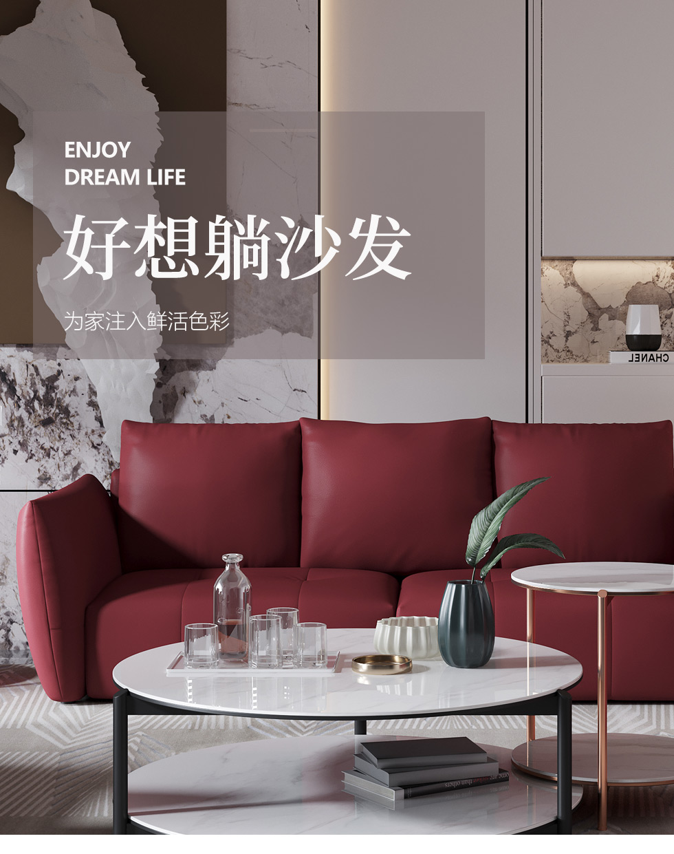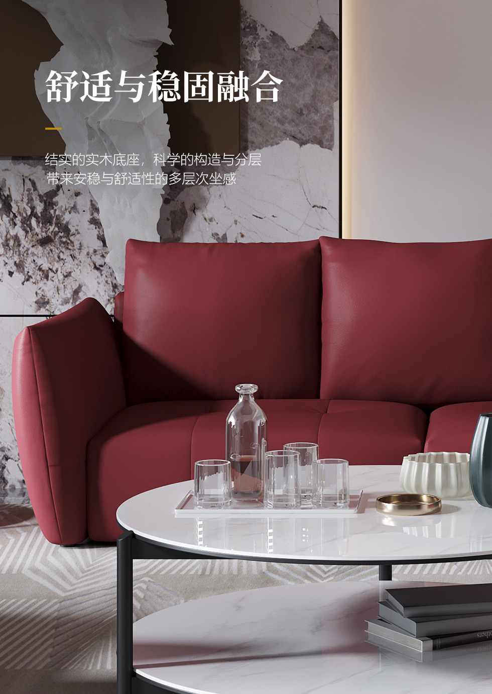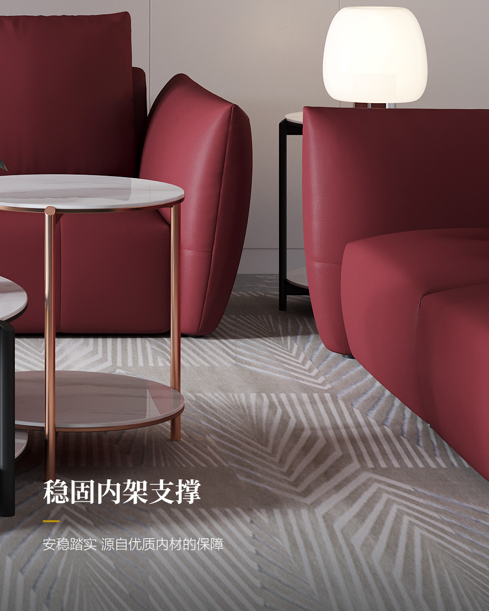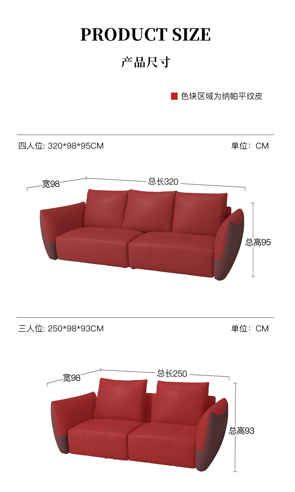 希奥 极简 纳帕平纹皮+40-45密度+五金脚 国潮红 皮艺1.8米沙发 双人位
