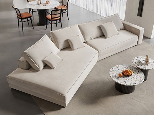 非凡工艺 现代简约 地平线沙发 网红 棉麻+框架落叶松木+多层实木夹板+碳素钢脚 4米3+异形左贵妃 沙发¥8509
