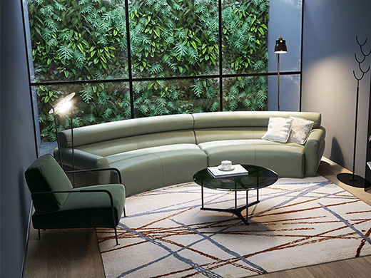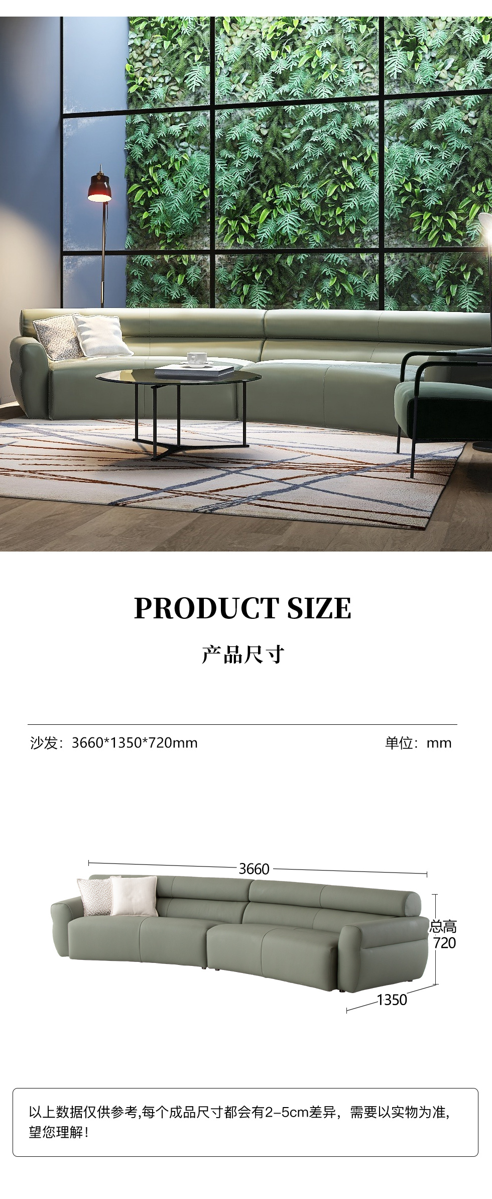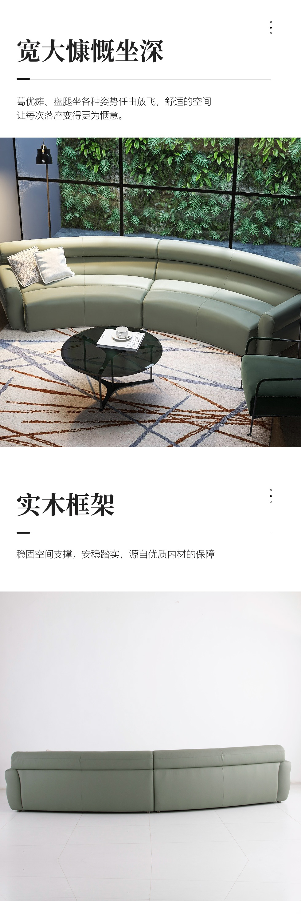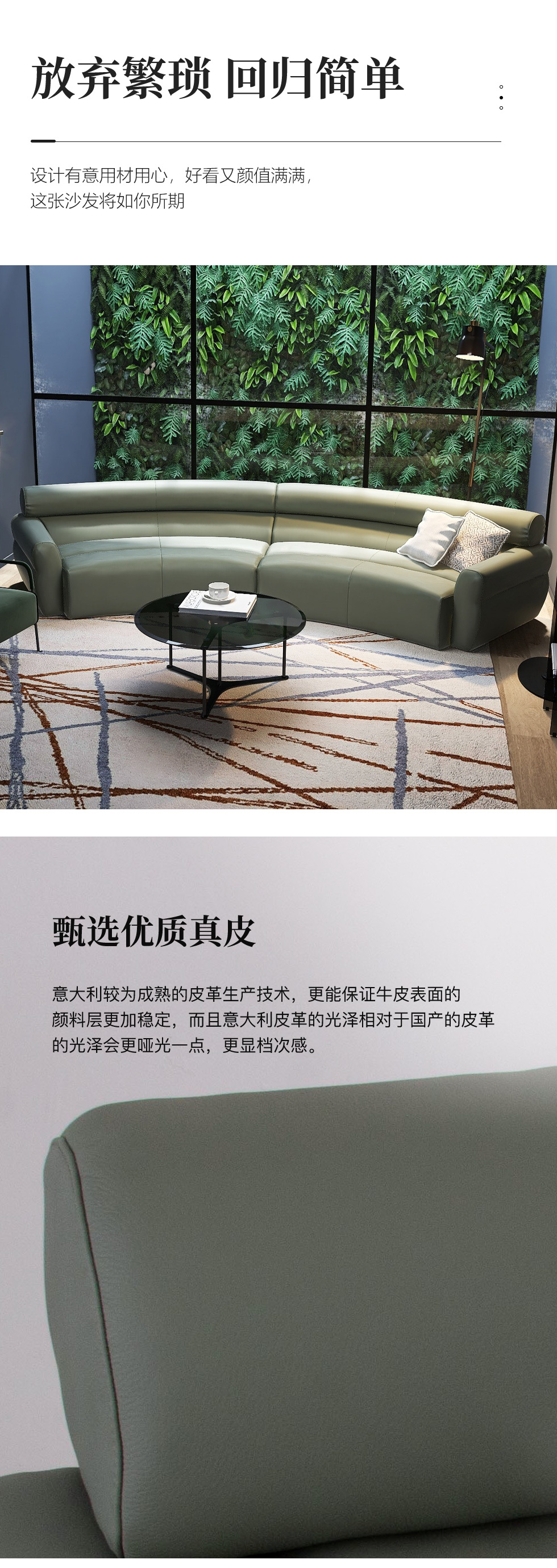 缔造 极简 接触面进口意大利头层真皮+羽丝棉+高密度海棉+碳素钢脚 皮艺组合弧形3.66米沙发(左3+右3) |
