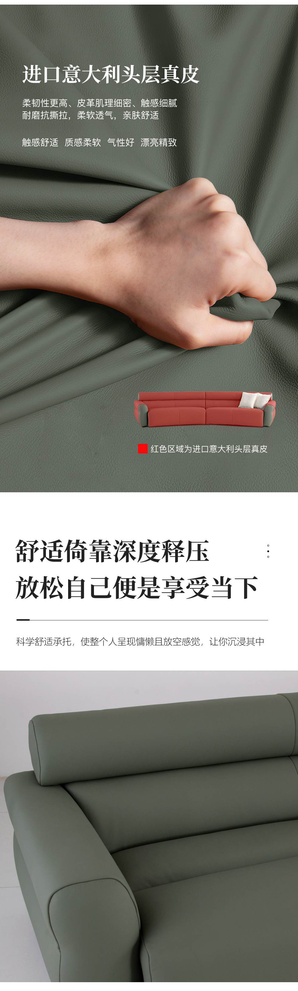缔造 极简 接触面进口意大利头层真皮+高密度海棉+碳素钢脚 三人位 皮艺组合3.05米沙发