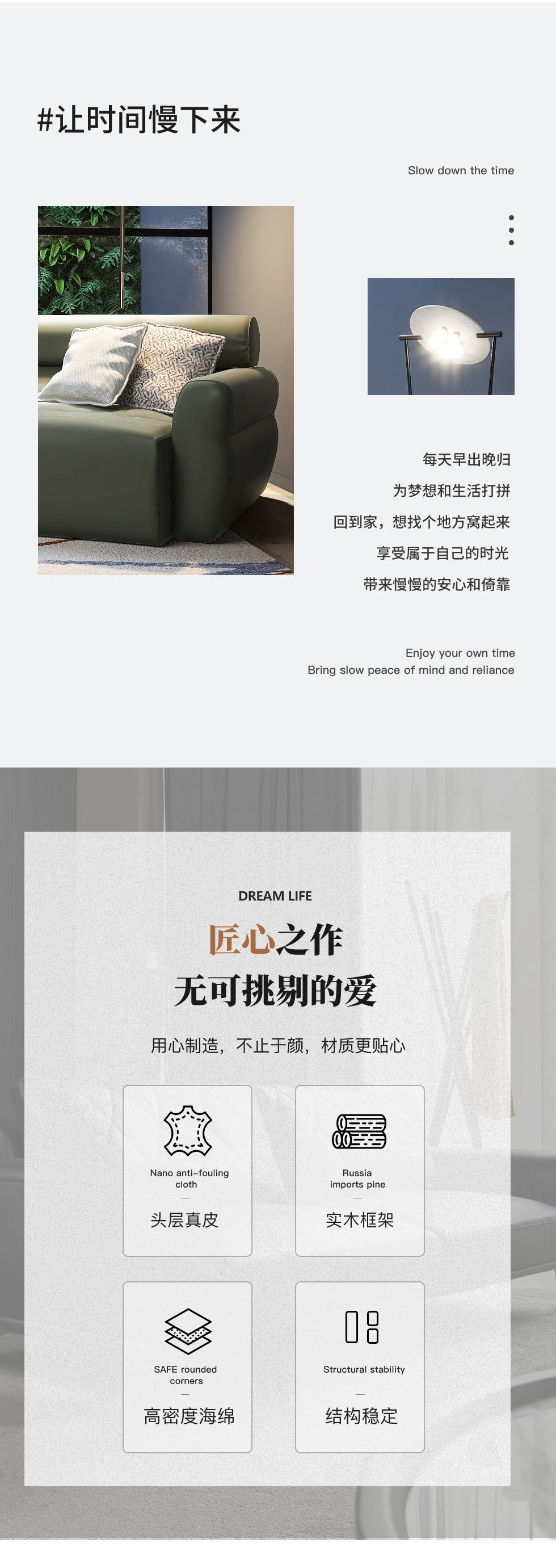 缔造 极简 接触面进口意大利头层真皮+羽丝棉+高密度海棉+碳素钢脚+北美白蜡木(做碳灰木色)真皮沙发 两人位2.4米沙发
